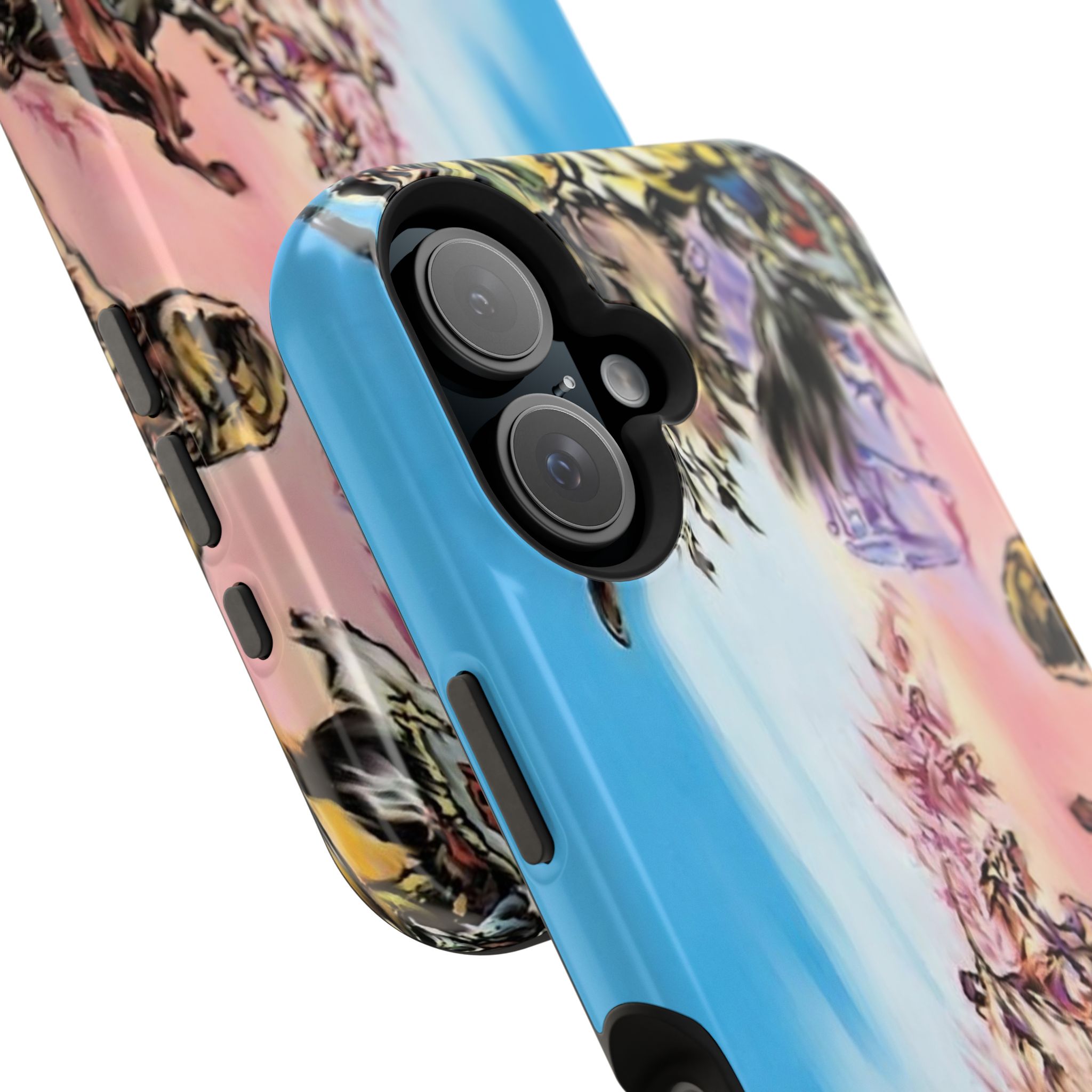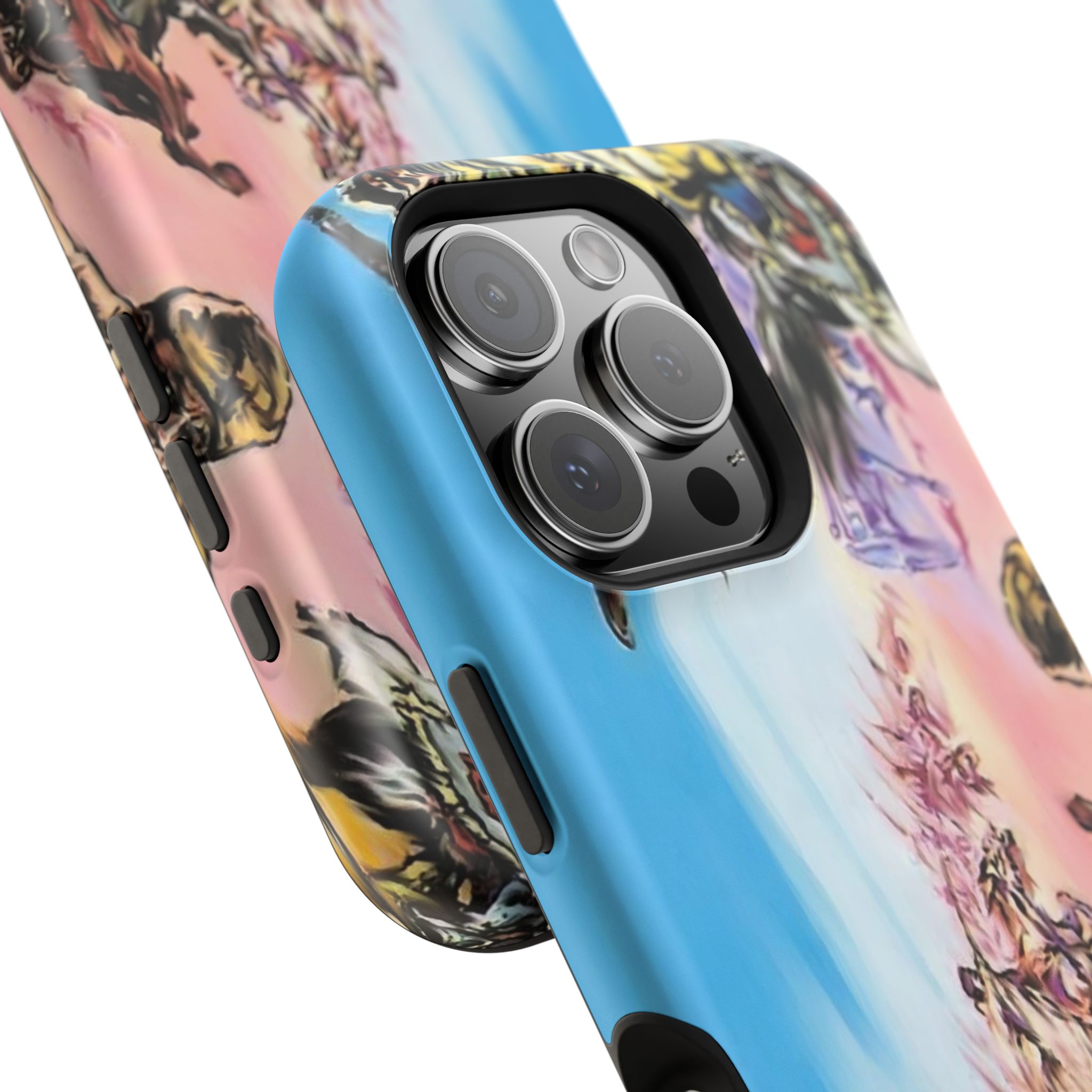 A vivid, impact-resistant phone case that brings bold, photo-realistic artwork to your daily carry while guarding your device. The dual-layer construction pairs a rigid polycarbonate shell with a cushioned TPU liner to absorb shocks and resist scratches. Full-wrap printing keeps the colorful scene uninterrupted across the back and sides, while your choice of glossy or matte finish controls the final look — high shine for saturated pop, or matte for a softer, painterly feel. Embedded interior magnets provide MagSafe® compatibility for convenient attachment to Apple accessories. Lightweight but tough, this case fits into a busy life where style and protection are both non-negotiable.