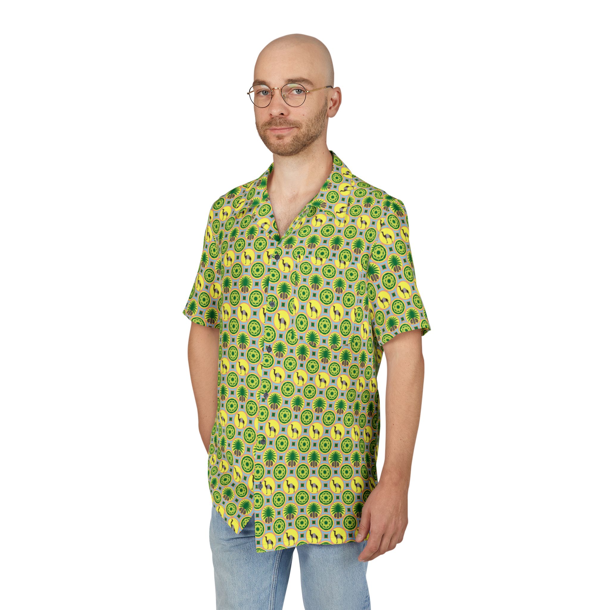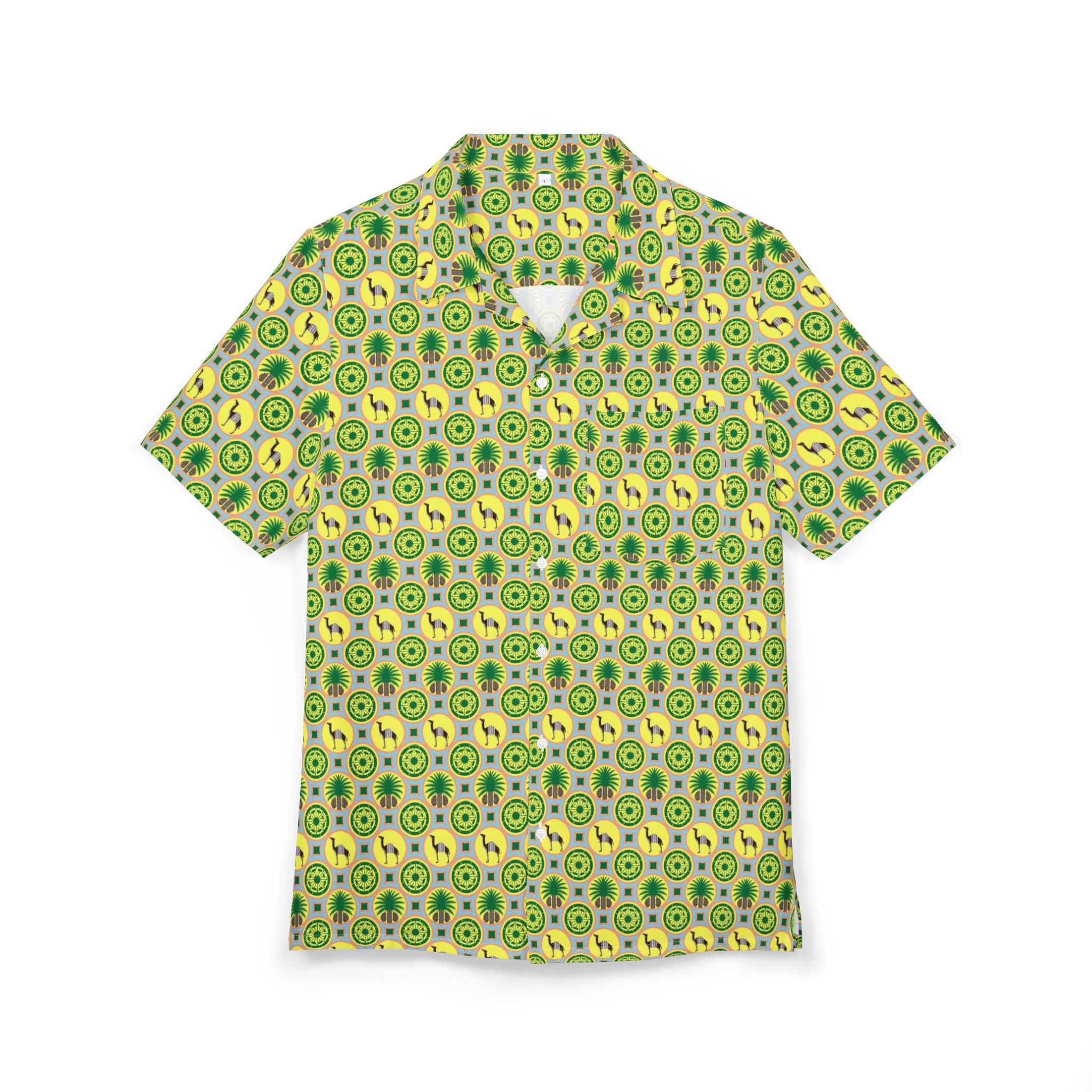 This lightweight Hawaiian button-down brings sun-soaked energy to slow afternoons and spontaneous beach runs. The all-over kaleidoscope of yellow and green blossoms moves with you—bright without shouting—so it slips easily into backyard barbecues, coastal walks, and relaxed island evenings. The flowy, breathable fabric breathes on hot days; a structured collar and placket keep the silhouette tidy when you want to look put-together. Small details like matched button colors, a sewn-in label, and careful assembly in the USA add a quietly polished feel to a carefree shirt. Wear it with shorts, linen pants, or layered under an open jacket for a playful pop of pattern.